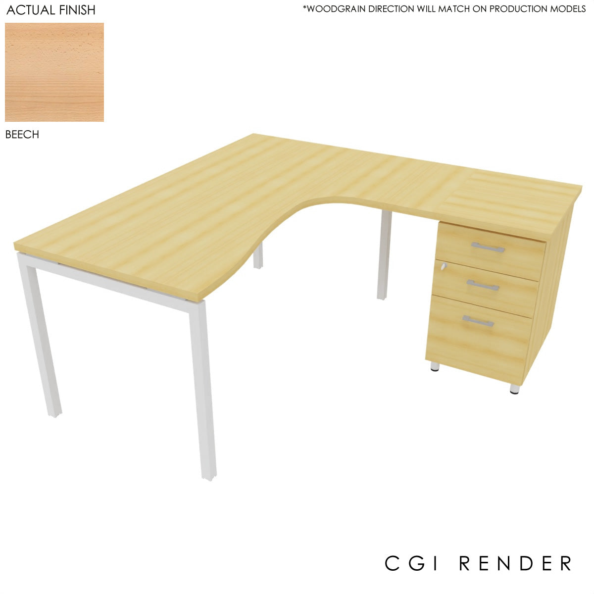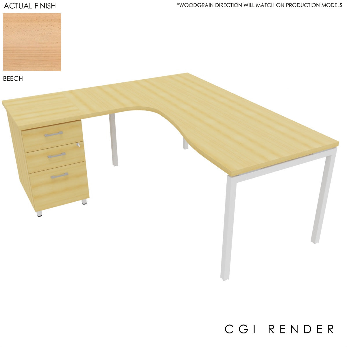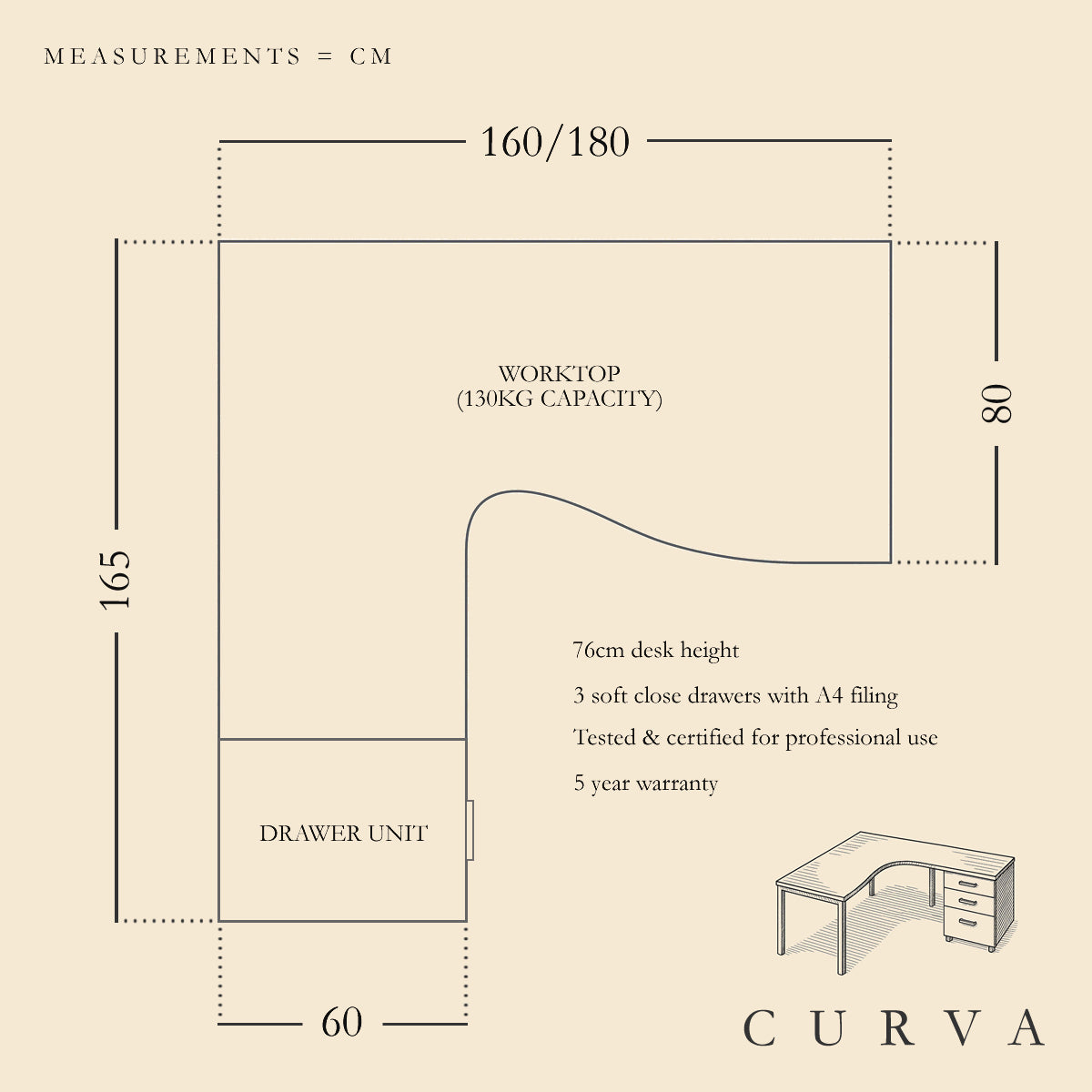 Available in left- or right-hand configurations, the Curva Corner Desk comes in 160cm or 180cm widths with a 165cm depth. The sturdy legs are finished in Aluminium, Shadow Grey, or White, while the worktop is offered in six refined finishes: Oak, Elm, Beech, American Walnut, Grey, or White.