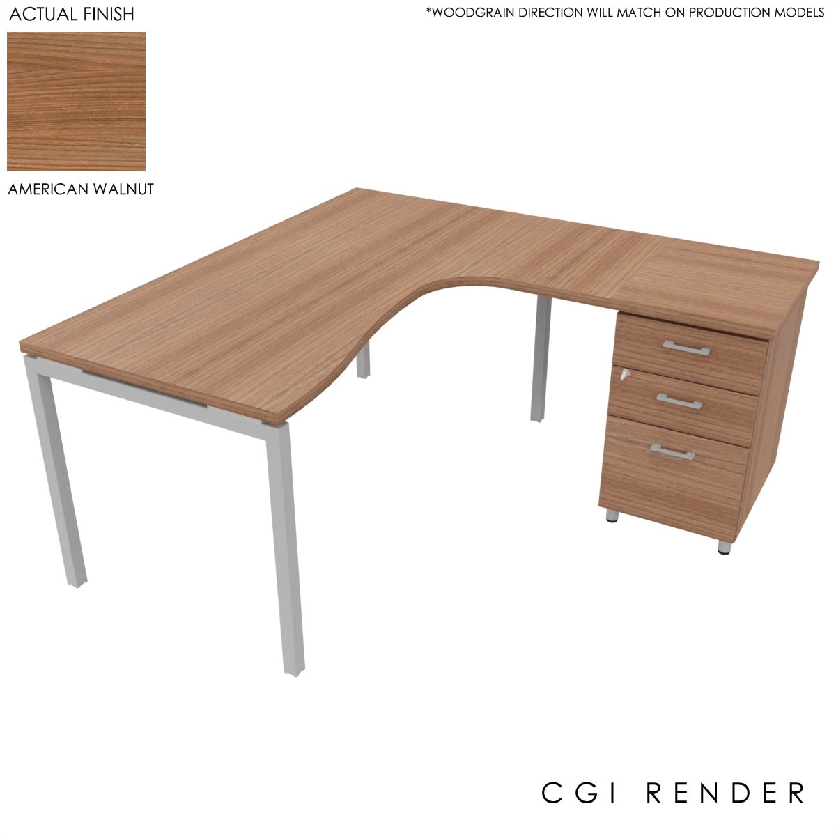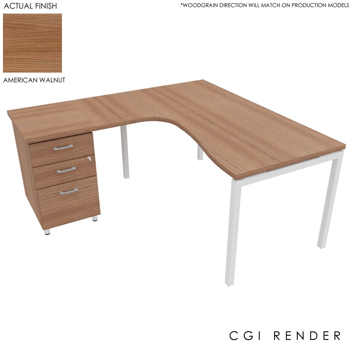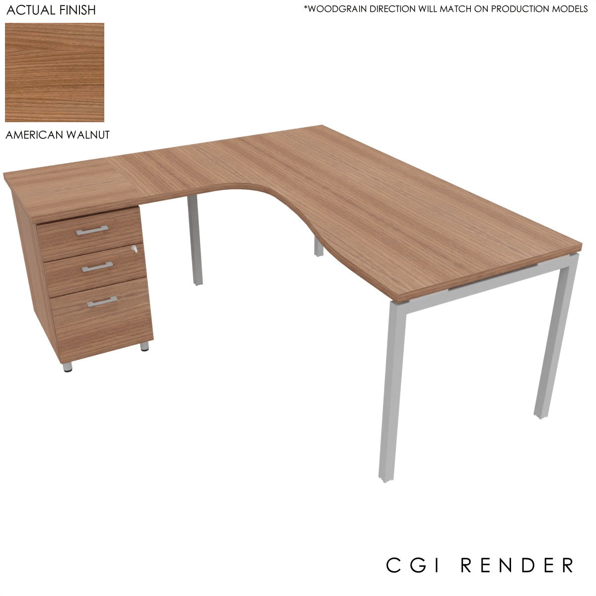 Available in left- or right-hand configurations, the Curva Corner Desk comes in 160cm or 180cm widths with a 165cm depth. The sturdy legs are finished in Aluminium, Shadow Grey, or White, while the worktop is offered in six refined finishes: Oak, Elm, Beech, American Walnut, Grey, or White.