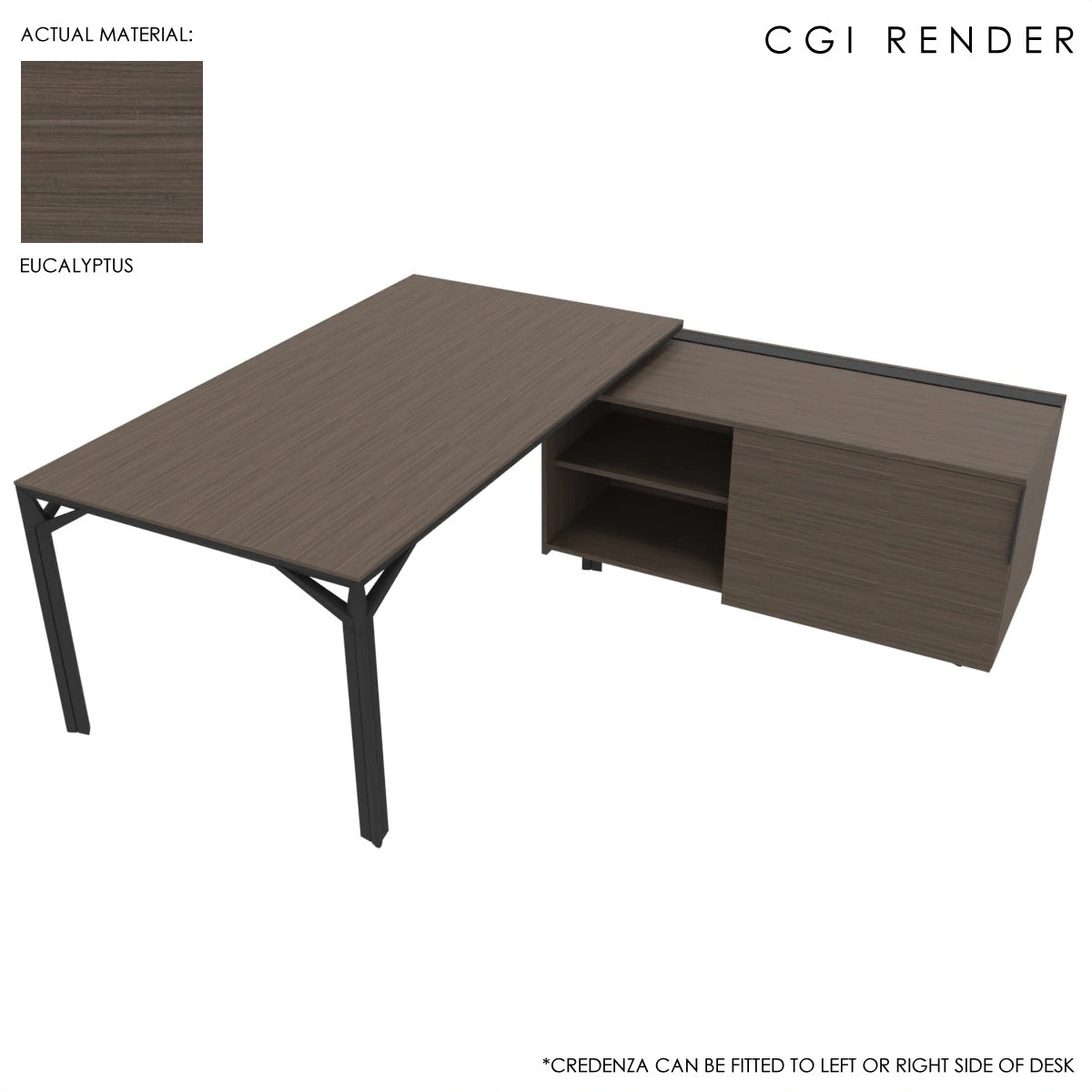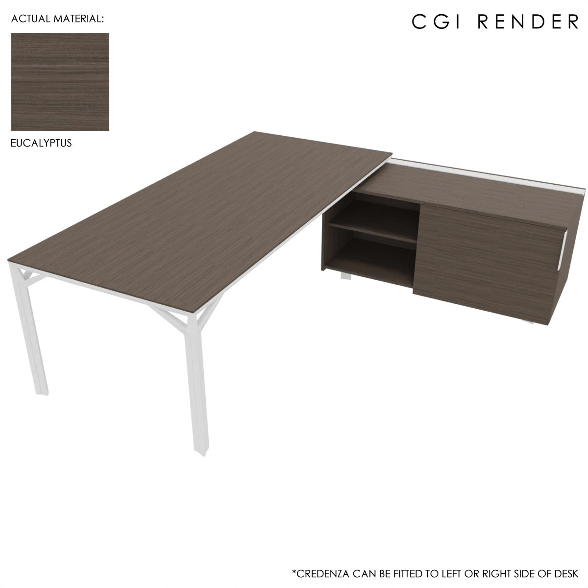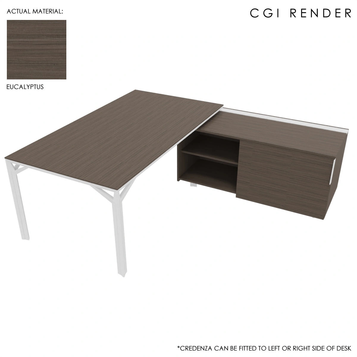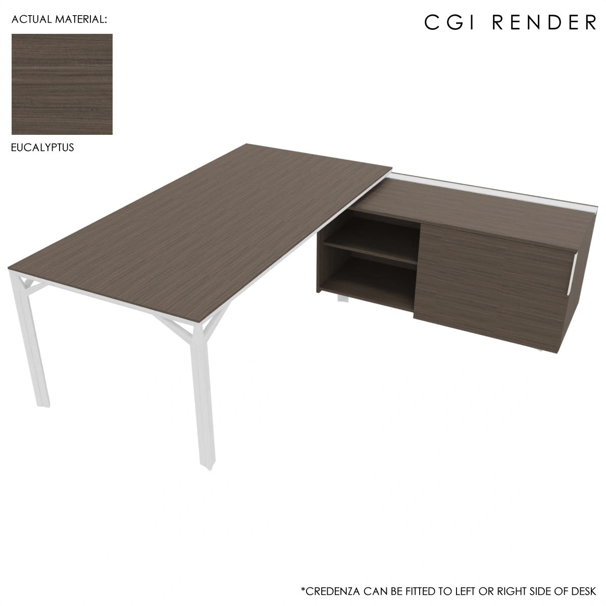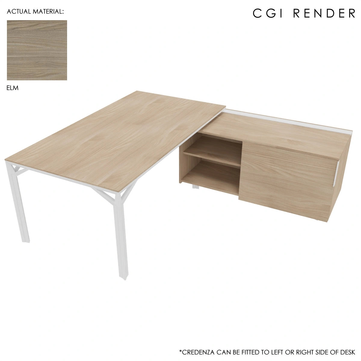 The integrated storage credenza features a stylish metal cable flap for concealing wires and a thoughtful combination of storage options to keep your workspace organised. Open shelving and cupboard space are paired with an integrated pen drawer, while a sliding door with a side-mounted finger-pull handle completes the clean, minimalist design.