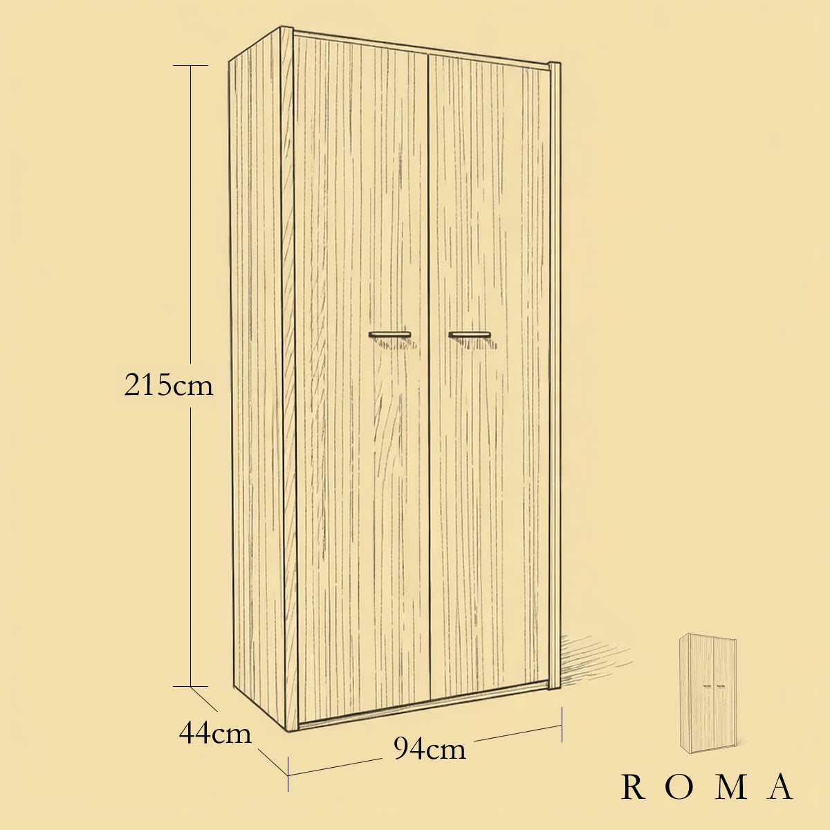 The Roma Double Cupboard is a wide-format, full-height storage piece designed to bring calm, concealed organisation to refined workspaces and contemporary homes. Standing 2150mm high and 940mm wide, it provides generous closed storage behind two clean, flush doors — ideal for keeping files, supplies and everyday items neatly out of sight while preserving a composed, architectural look.