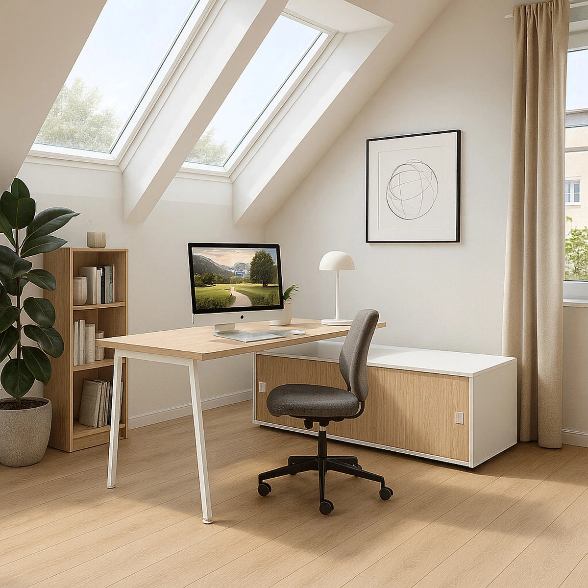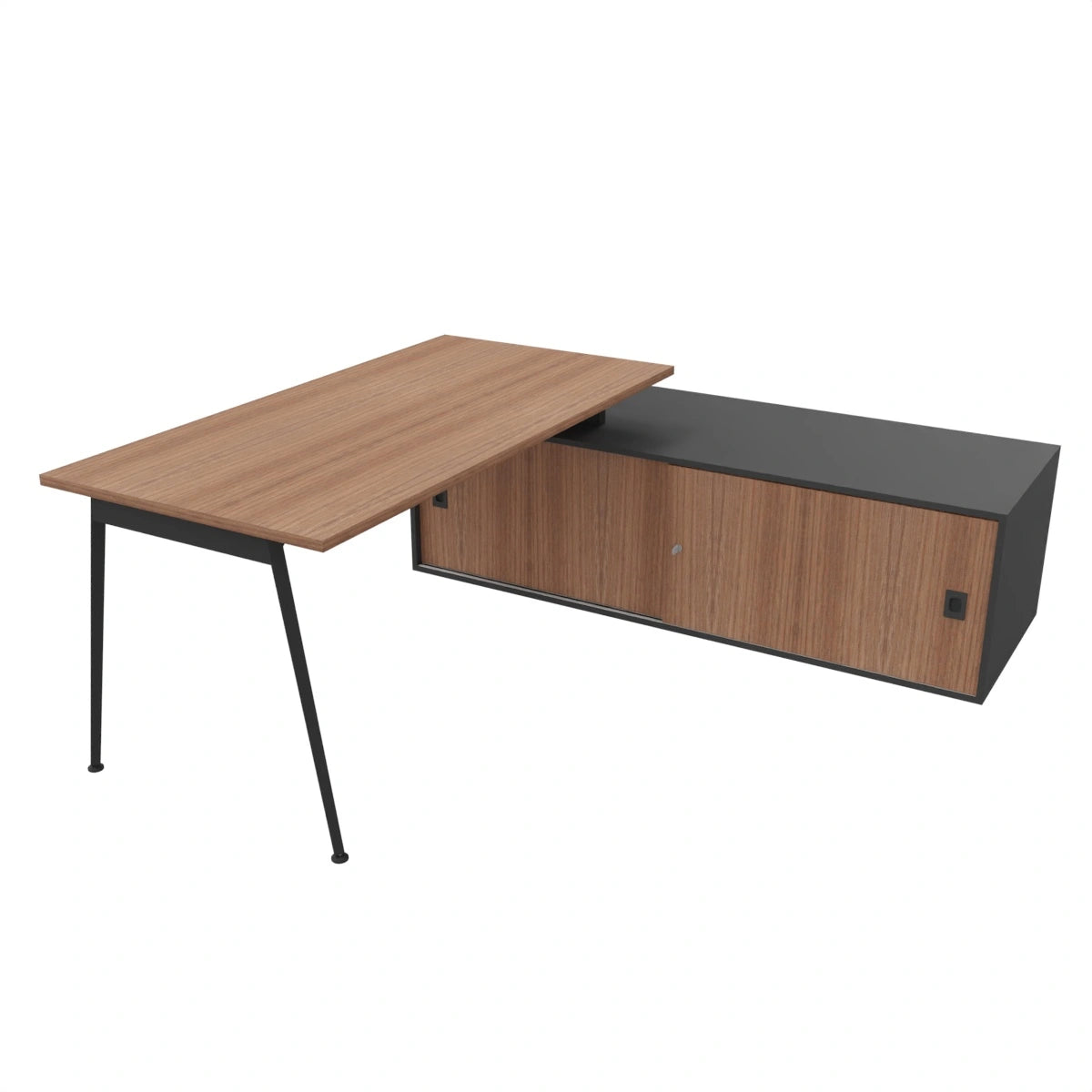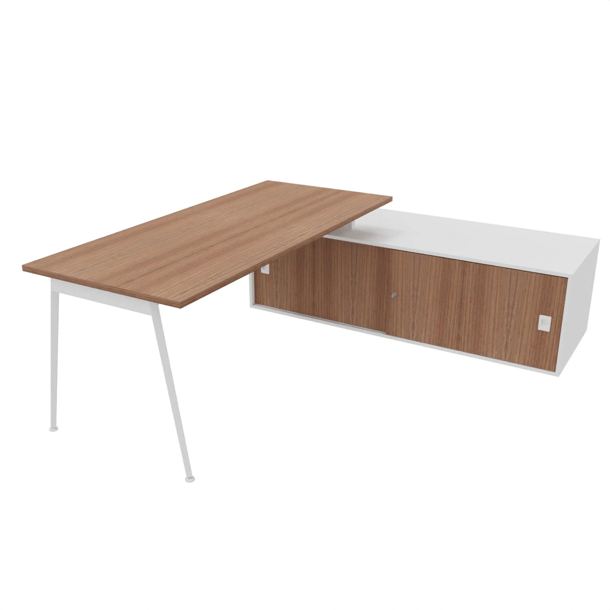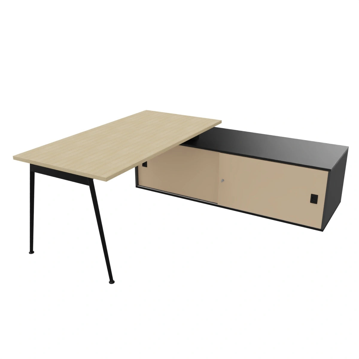 Each desk can be built in left or right-hand orientation, ensuring flexibility in any layout without requiring additional specification at checkout. The metal legs are available in white or shadow grey, while the worktop comes in a choice of Oak, Elm, American Walnut, White, or Grey. The credenza carcass can be finished in White or Anthracite Linen, allowing you to create a workspace that perfectly complements your interior.