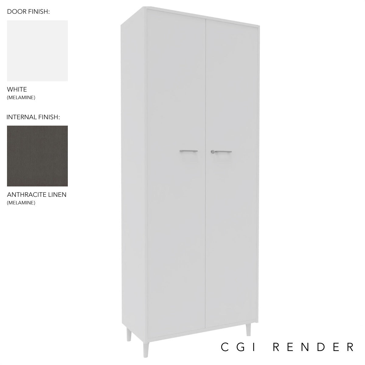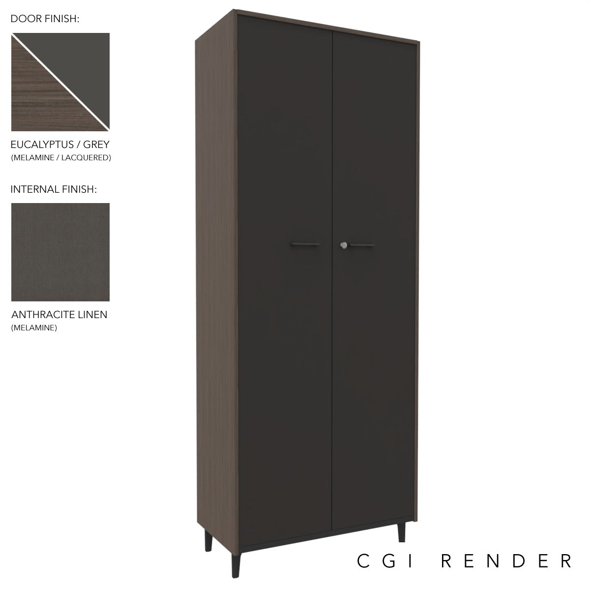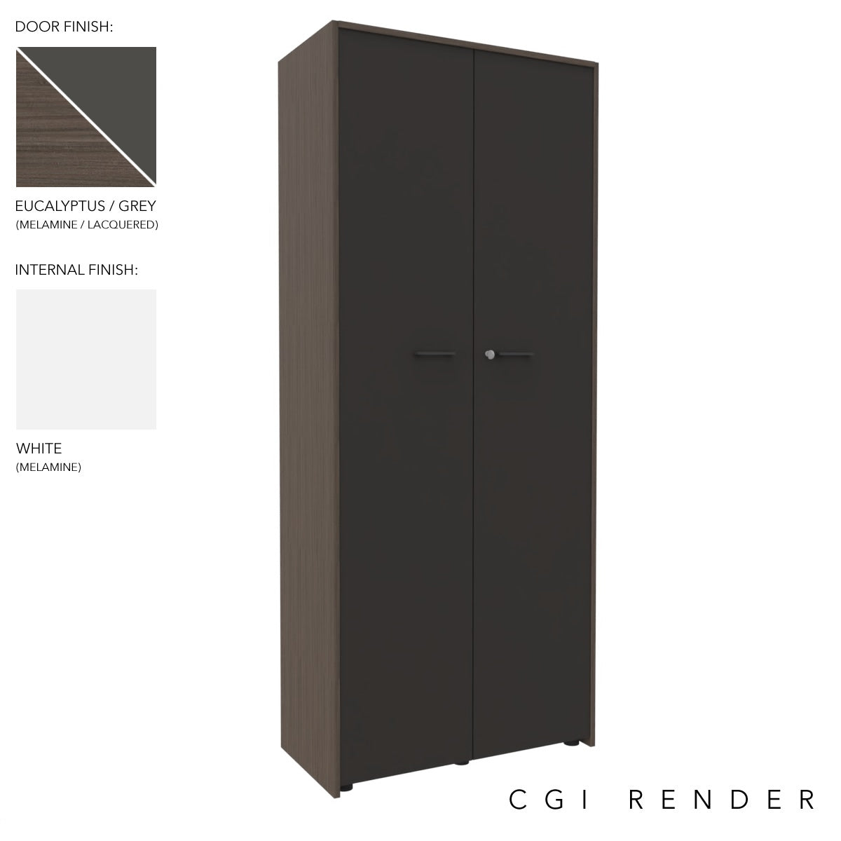 Available in Elm, American Walnut, Eucalyptus, Oak, White and Grey, the exterior is complemented by an internal carcass finished in White or Anthracite Linen. Standing 2158mm high and 896mm wide, the cabinet maximises vertical storage while maintaining a clean footprint, allowing it to sit comfortably within executive offices, meeting rooms or larger storage zones.